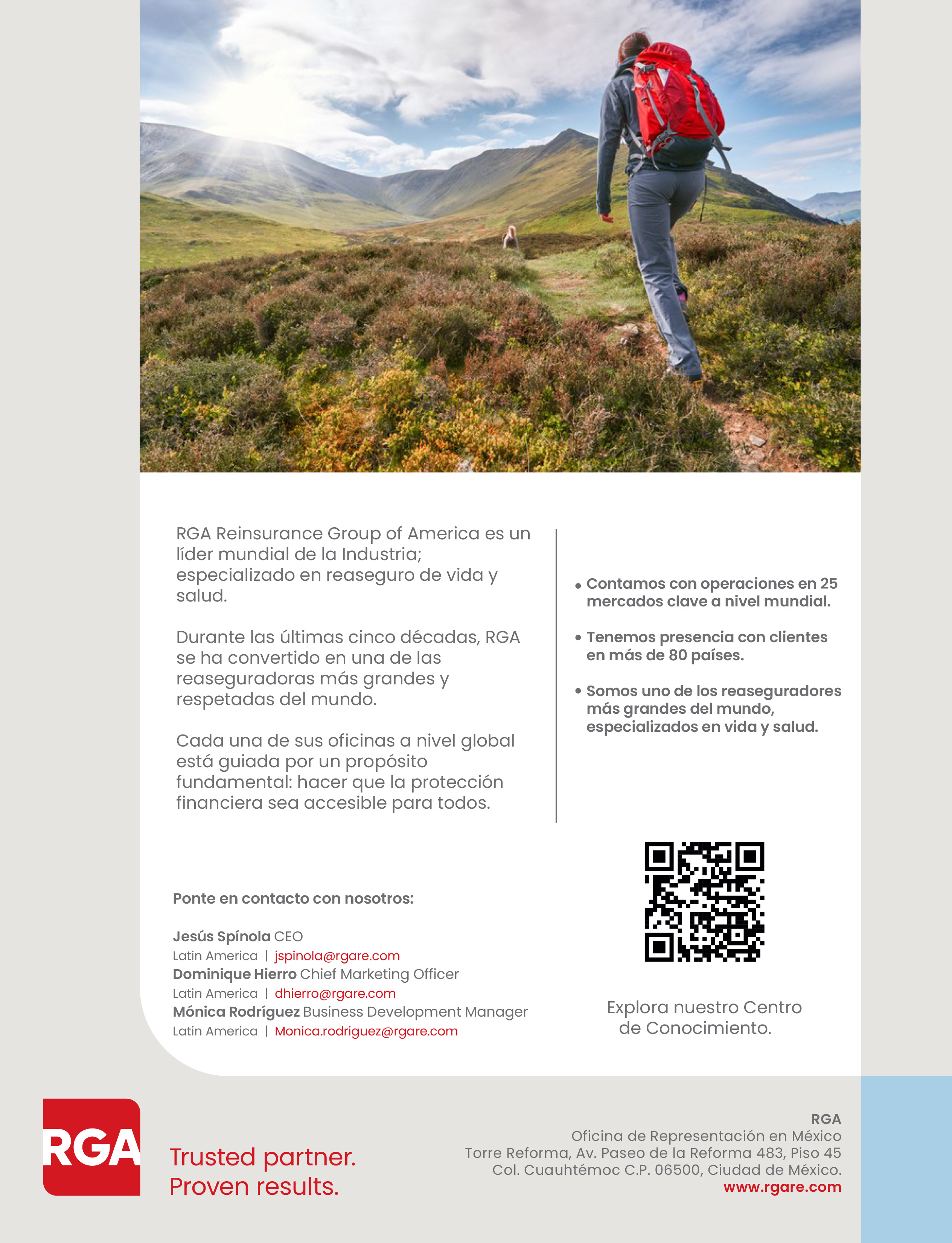 El éxito de RGA se debe a nuestro compromiso para el desarrollo de productos innovadores, mejores rendimientos de un producto existente, ofrecimiento de servicios de suscripción facultativos o gestionar mejor el riesgo y el capital a través de soluciones financieras, logrando un servicio excepcional para nuestros clientes. Brindamos una línea completa de productos y servicios, incluidos los ramos de vida individual, vida grupo, gastos médicos mayores, salud, así como coberturas catastróficas y soluciones financieras. En RGA creemos en el poder del conocimiento compartido ayudando tanto a nuestros clientes a mantenerse al tanto de los últimos conocimientos, la investigación y las tendencias a través de conferencias y oportunidades de capacitación a nivel mundial.